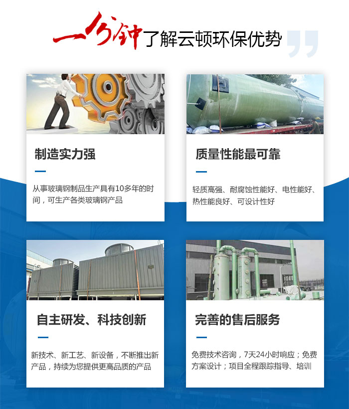 公司拥有国内先进玻璃钢生产线5条,是全省生产玻璃钢贮罐等玻璃钢制品的生产企业。公司的主要产品有玻璃钢缠绕储罐、贮罐、反应罐、专用设备搅拌罐;逆流式(方形、圆形)冷却塔,横流式冷却塔、闭式冷却塔;玻璃钢喷淋塔、脱硫塔、吸收塔;PPH储罐、PPH喷淋塔,玻璃钢集气罩、污水池盖板,玻璃钢缠绕管道、复合管道、压力管道、通风管道等200多个品种,并可根据用户需求定制。